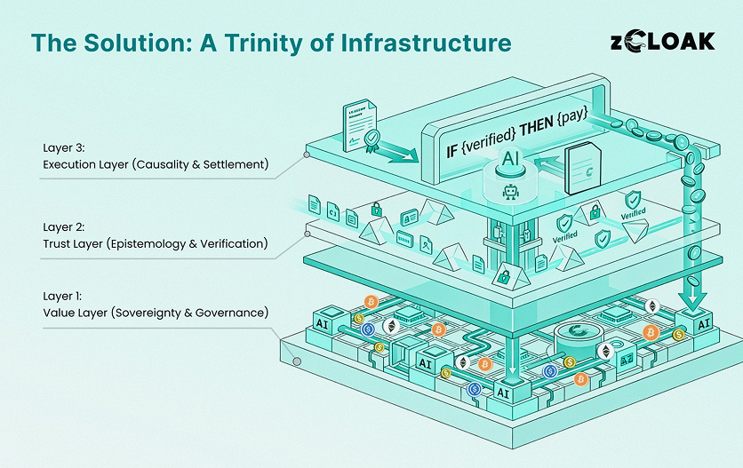 zCloak's Role: We provide the Identity Rails (Layer 2) that allow AI to sign simple documents and the Payment Rails (Layer 1) for micro-transactions, reducing human friction by 90%.